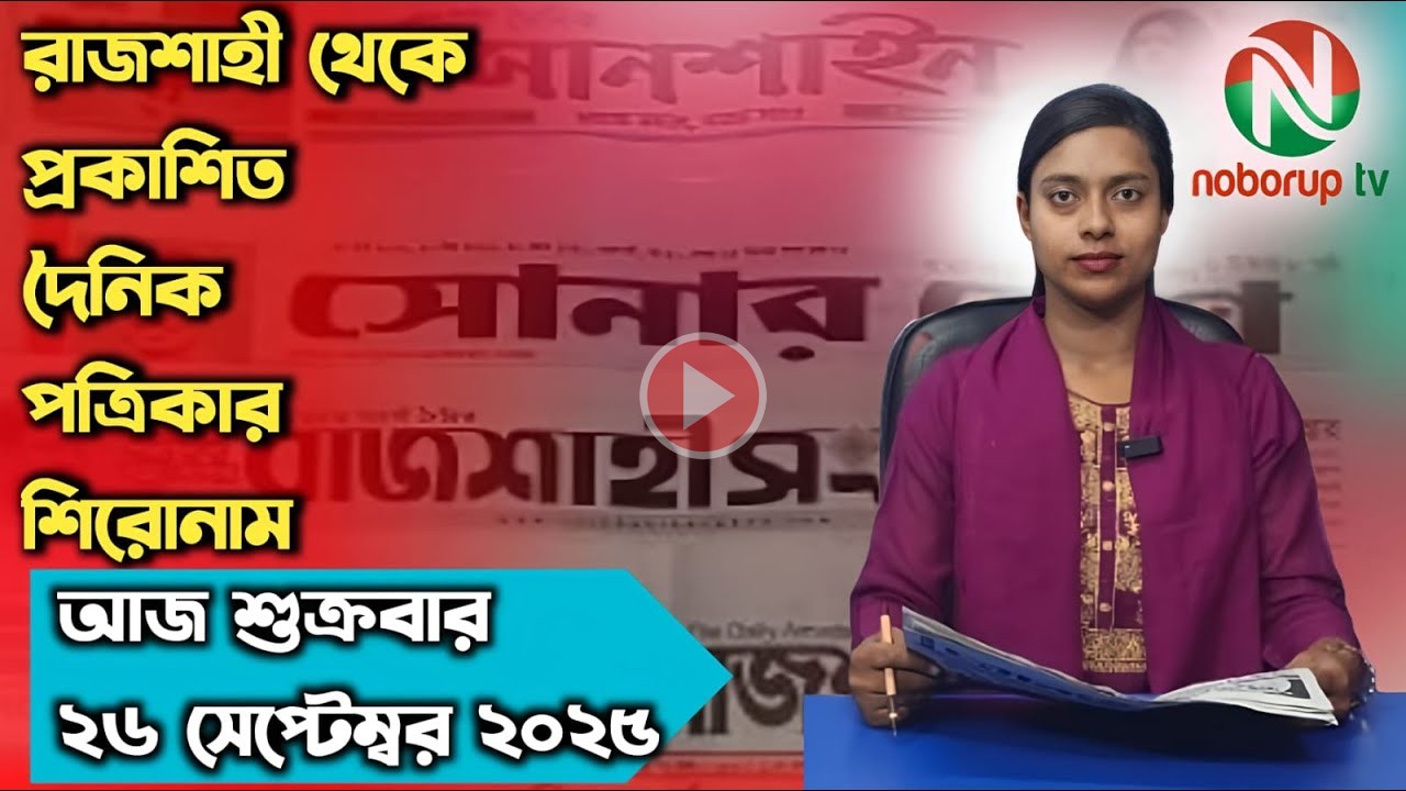 এক পলকে রাজশাহীর দৈনিক পত্রিকার শিরোনাম (শুক্রবার, ২৬ সেপ্টেম্বর ২০২৫ ) উপস্থাপনায় পলি রানি