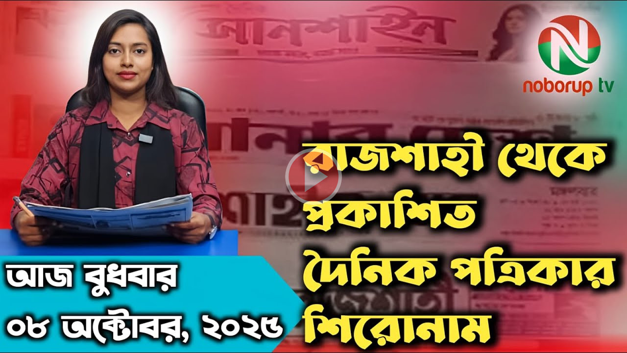 এক পলকে রাজশাহীর দৈনিক পত্রিকার শিরোনাম (বুধবার, ০৮ অক্টোবর ২০২৫) উপস্থাপনায় পলি রানি