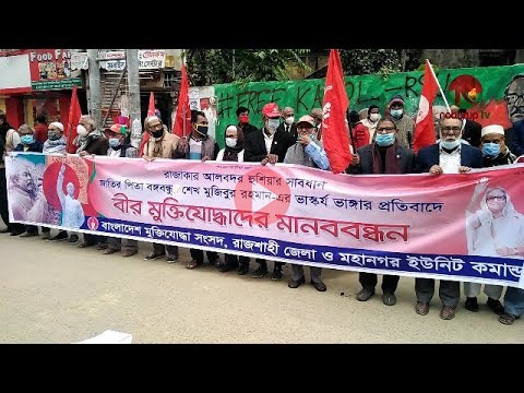 বঙ্গবন্ধু শেখ মুজিবুর রহমানের ভাস্কর্য ভাঙ্গার প্রতিবাদে রাজশাহী মহানগরীতে বীর মুক্তিযোদ্ধাদের মানববন্ধন অনুষ্ঠিত হয়েছে।