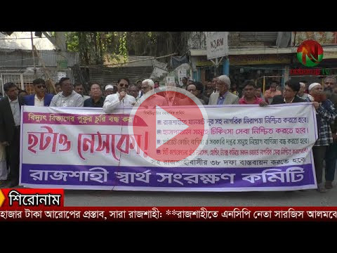 বিস্তারিত দেখুন নিচের ভিডিও লিংকে সাইদুর রহমানের প্রতিবেদনে… রাজশাহীতে বিদ্যুতের প্রিপেইড মিটারের ভৌতিক ও অস্বাভাবিক বিল বন্ধ করা, শহরের গুরুত্বপূর্ণ পয়েন্টে দীর্ঘস্থায়ী যানজট নিরসন, রাজশাহী মেডিকেল কলেজ হাসপাতালে উন্নত চিকিৎসাসেবা নিশ্চিত করা এবং কোচিং বাণিজ্য বন্ধসহ ৩৮ দফা দাবিতে মানববন্ধন করেছে রাজশাহী স্বার্থ সংরক্ষণ কমিটি। আজ শনিবার বেলা সাড়ে ১১টায় মহানগরীর সাহেববাজার জিরোপয়েন্টে এই মানববন্ধন অনুষ্ঠিত হয়। মানববন্ধনে বিভিন্ন সামাজিক ও নাগরিক সংগঠনের নেতারা অংশ নেন। মানববন্ধনে বক্তারা বলেন, রাজশাহীর মানুষ শান্তিপ্রিয় হলেও সর্বক্ষেত্রে দুর্নীতি, অব্যবস্থাপনা ও অরাজকতা ভয়াবহ আকার ধারণ করেছে। নেসকোর প্রিপেইড মিটারের ‘গলাকাটা’ বিল সাধারণ মানুষের জীবনে চরম দুর্ভোগ ডেকে এনেছে। তারা অভিযোগ করেন, বিলিং, সার্ভিস, মিটার ব্যবস্থাপনা, সব খাতেই অস্বচ্ছতা ও অনিয়ম চলছে। এগুলো বন্ধ না হলে রাজশাহীবাসীকে সঙ্গে নিয়ে কঠোর আন্দোলন গড়ে তোলা হবে। চিকিৎসাসেবা নিয়ে বক্তারা বলেন, রাজশাহী মেডিকেল কলেজ হাসপাতালের চিকিৎসাসেবা অপ্রতুল, চিকিৎসা সরঞ্জাম সংকট, মনিটরিং দুর্বলতা, অব্যবস্থাপনা এবং রোগীদের ভোগান্তি চরমে পৌঁছেছে। এসব সমস্যা সমাধানে জরুরি ভিত্তিতে সেবার উন্নয়ন, জনবল বৃদ্ধি ও দায়বদ্ধতা নিশ্চিত করার দাবি জানানো হয়। বক্তারা আরও বলেন, সরকারি দপ্তরে নিয়োগ বাণিজ্য বন্ধ করতে হবে। কোচিং সেন্টারের বাণিজ্যিক কার্যক্রম নিষিদ্ধ করে শিক্ষার স্বাভাবিক পরিবেশ ফিরিয়ে আনা প্রয়োজন। নগরবাসীর স্বার্থকে অগ্রাধিকার না দিলে আরও কঠোর আন্দোলনের হুঁশিয়ারি দেন বক্তারা। শান্তিপূর্ণ মানববন্ধনের মাধ্যমে তারা সংশ্লিষ্ট কর্তৃপক্ষের নিকট দ্রুত কার্যকর উদ্যোগ প্রত্যাশা করেন। মানববন্ধনে উপস্থিত থেকে অন্যদের মধ্যে বক্তব্য দেন- সংগঠনের আহ্বায়ক অ্যাডভোকেট এনামুল হক, সদস্য সচিব মাহফুজুল হাসনাইন হিকোল, উপদেষ্টা ড. অসীম হোসেন, জালাল উদ্দিন, রাকিবুল ইসলাম রাকিব, শরিফুল ইসলাম, হোসেন আলী পেয়ারা, অচিন্ত্য কুমার বিশ্বাস সান্টু, সুলতান মাহমুদ, রবিউল ইসলাম, তৌফিক আহসান টিটু, শফিকুল আলম সমাপ্ত প্রমুখ।