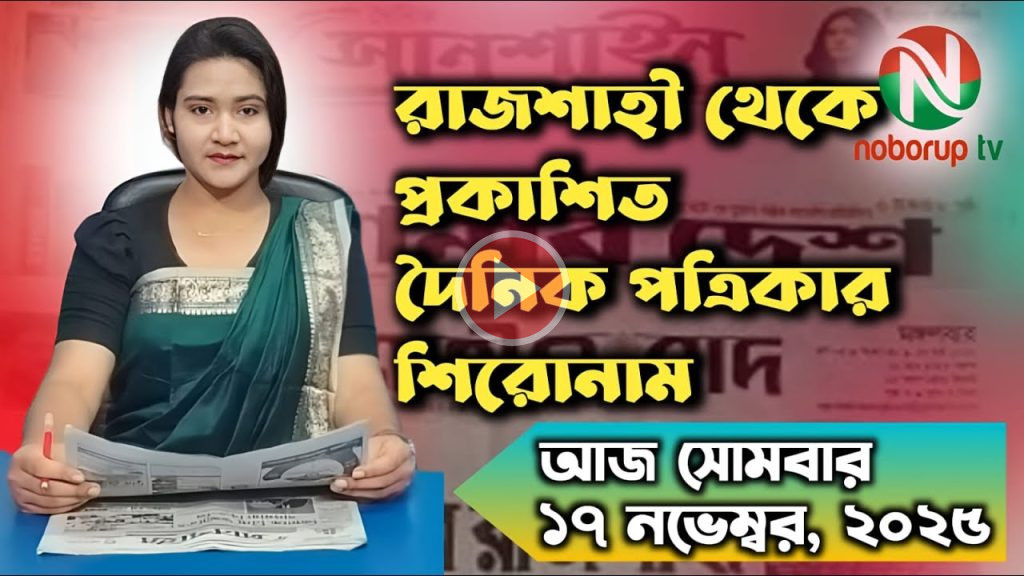 এক পলকে রাজশাহীর দৈনিক পত্রিকার শিরোনাম (সোমবার, ১৭ নভেম্বর ২০২৫) উপস্থাপনায় মিরাতুজ জাহান মিলি