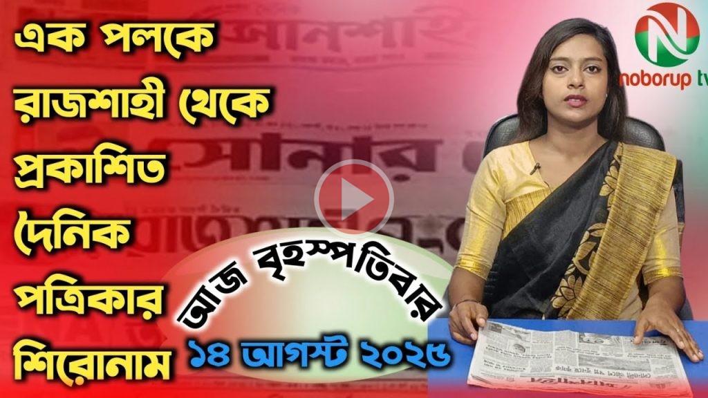 এক নজরে রাজশাহীর দৈনিক পত্রিকার শিরোনাম (১৪ আগস্ট, বৃহস্পতিবার ২০২৫) উপস্থাপনায় পলি রানী