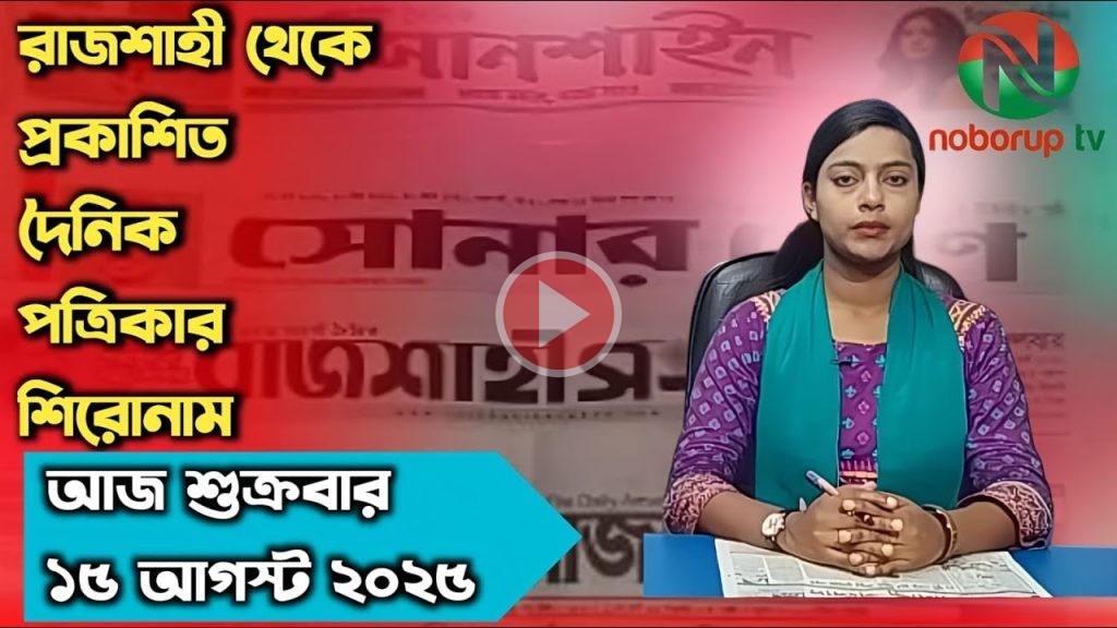 এক নজরে রাজশাহীর দৈনিক পত্রিকার শিরোনাম (১৫ আগস্ট, শুক্রবার ২০২৫) উপস্থাপনায় পলি রানী