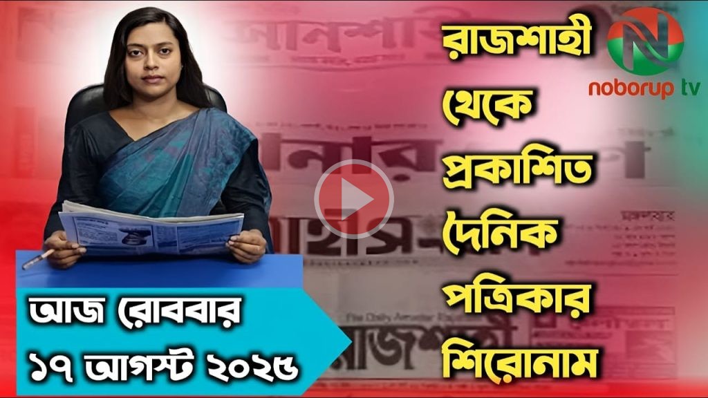 এক নজরে রাজশাহীর দৈনিক পত্রিকার শিরোনাম ১৭ আগস্ট, রবিবার ২০২৫) উপস্থাপনায় পলি রানী