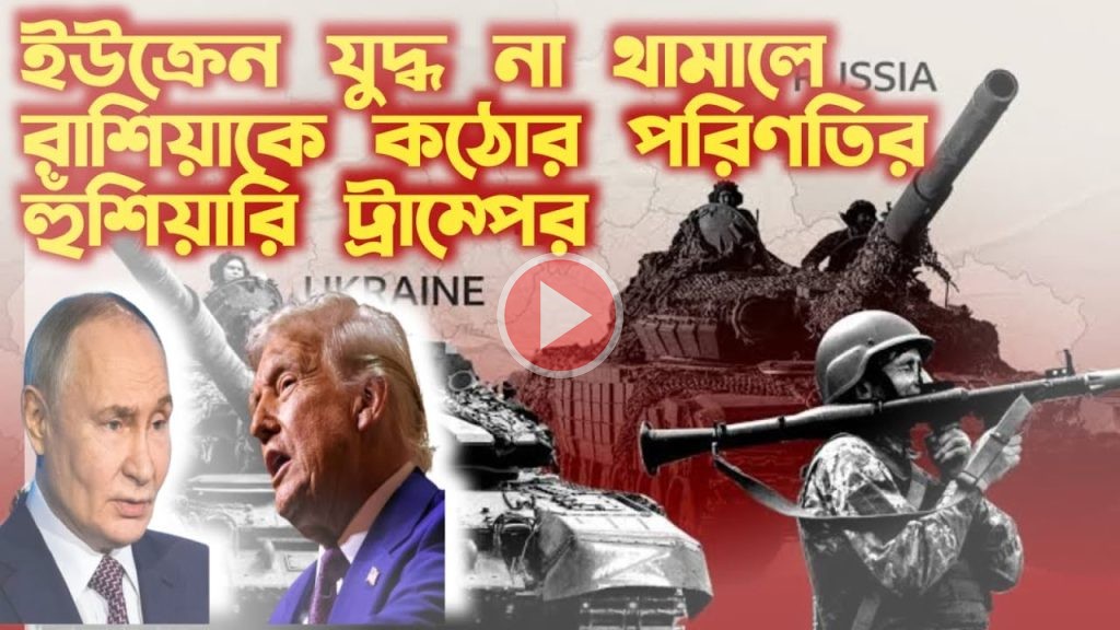 বিস্তারিত দেখুন নিচের ভিডিও লিংকে এস,এম, আব্দুল্লাহ্ উপস্থাপনায়… ইউক্রেন যুদ্ধ বন্ধে রুশ প্রেসিডেন্ট ভ্লাদিমির পুতিন রাজি না হলে তাকে ‘অত্যন্ত গুরুতর পরিণতি’ ভোগ করতে হবে বলে হুঁশিয়ারি দিয়েছেন মার্কিন প্রেসিডেন্ট ডোনাল্ড ট্রাম্প। আলাস্কায় আসন্ন বৈঠকে এ বিষয়ে আলোচনা হবে বলেও জানিয়েছেন তিনি। বৃহস্পতিবার (১৪ আগস্ট) এক প্রতিবেদনে এ তথ্য জানিয়েছে বার্তাসংস্থা আনাদোলু। ওয়াশিংটন ডিসির কেনেডি […]