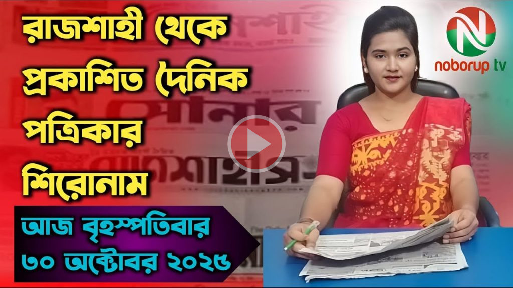 এক পলকে রাজশাহীর দৈনিক পত্রিকার শিরোনাম (বৃহস্পতিবার, ৩০ অক্টোবর ২০২৫) উপস্থাপনায় মিরাতুজ জাহান মিলি