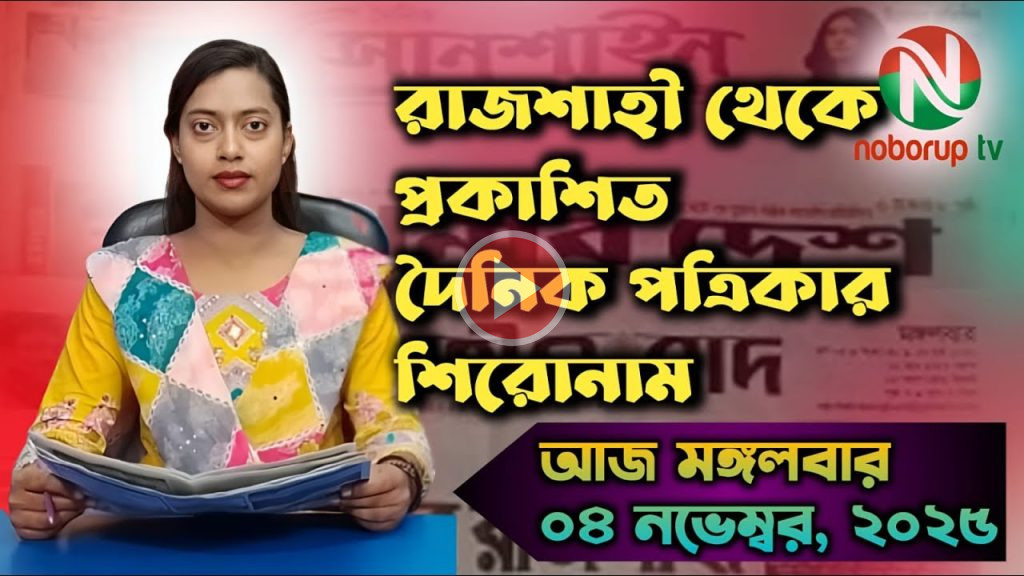 এক পলকে রাজশাহীর দৈনিক পত্রিকার শিরোনাম (মঙ্গলবার, ০৪ নভেম্বর ২০২৫) উপস্থাপনায় পলি রানি
