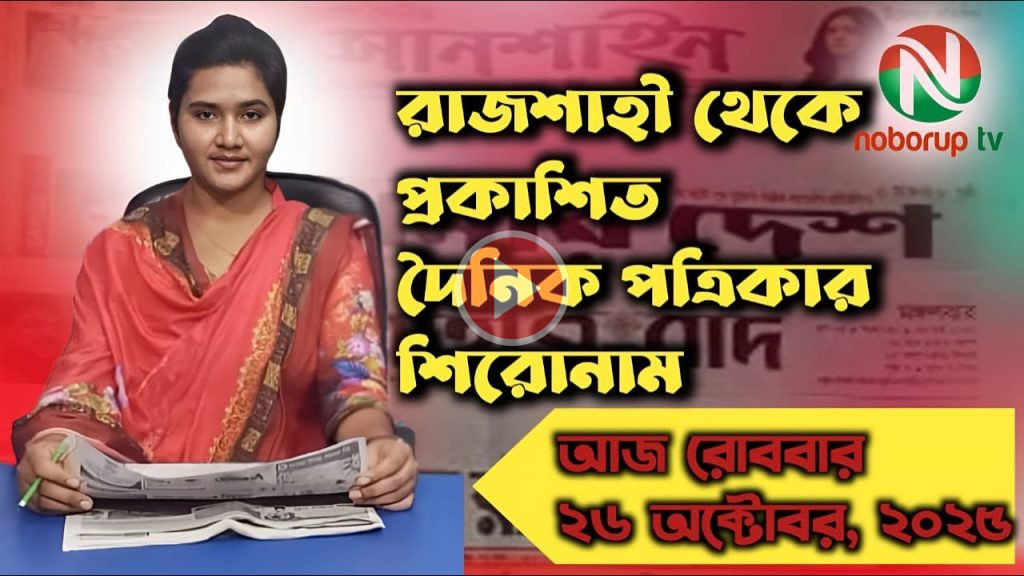 এক নজরে রাজশাহীর দৈনিক পত্রিকার শিরোনাম (রোববার, ২৬ অক্টোবর ২০২৫) উপস্থাপনায় মিরাতুজ জাহান মিলি