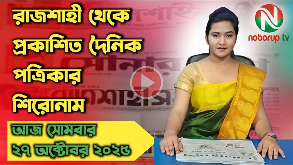 এক পলকে রাজশাহীর দৈনিক পত্রিকার শিরোনাম (সোমবার, ২৭ অক্টোবর ২০২৫) উপস্থাপনায় মিরাতুজ জাহান মিলি