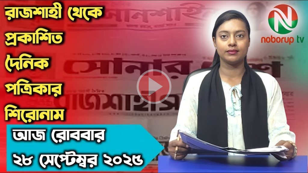 বিস্তারিত দেখুন নিচের ভিডিও লিংকে পলি রানীর উপস্থাপনায়… রাজশাহীর দৈনিক পত্রিকার শিরোনাম (রোববার, ২৮ সেপ্টেম্বর ২০২৫) উপস্থাপনায় পলি রানি